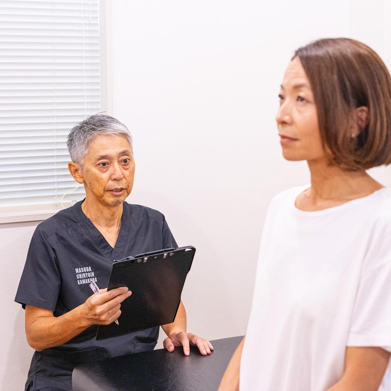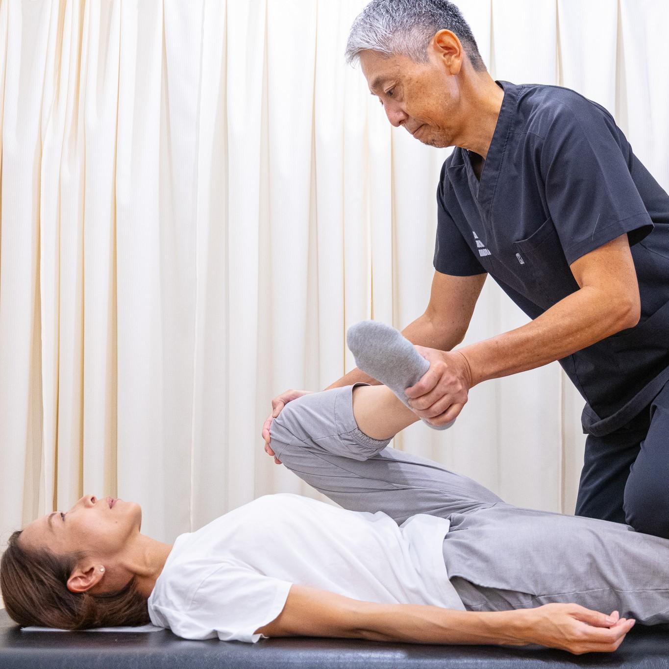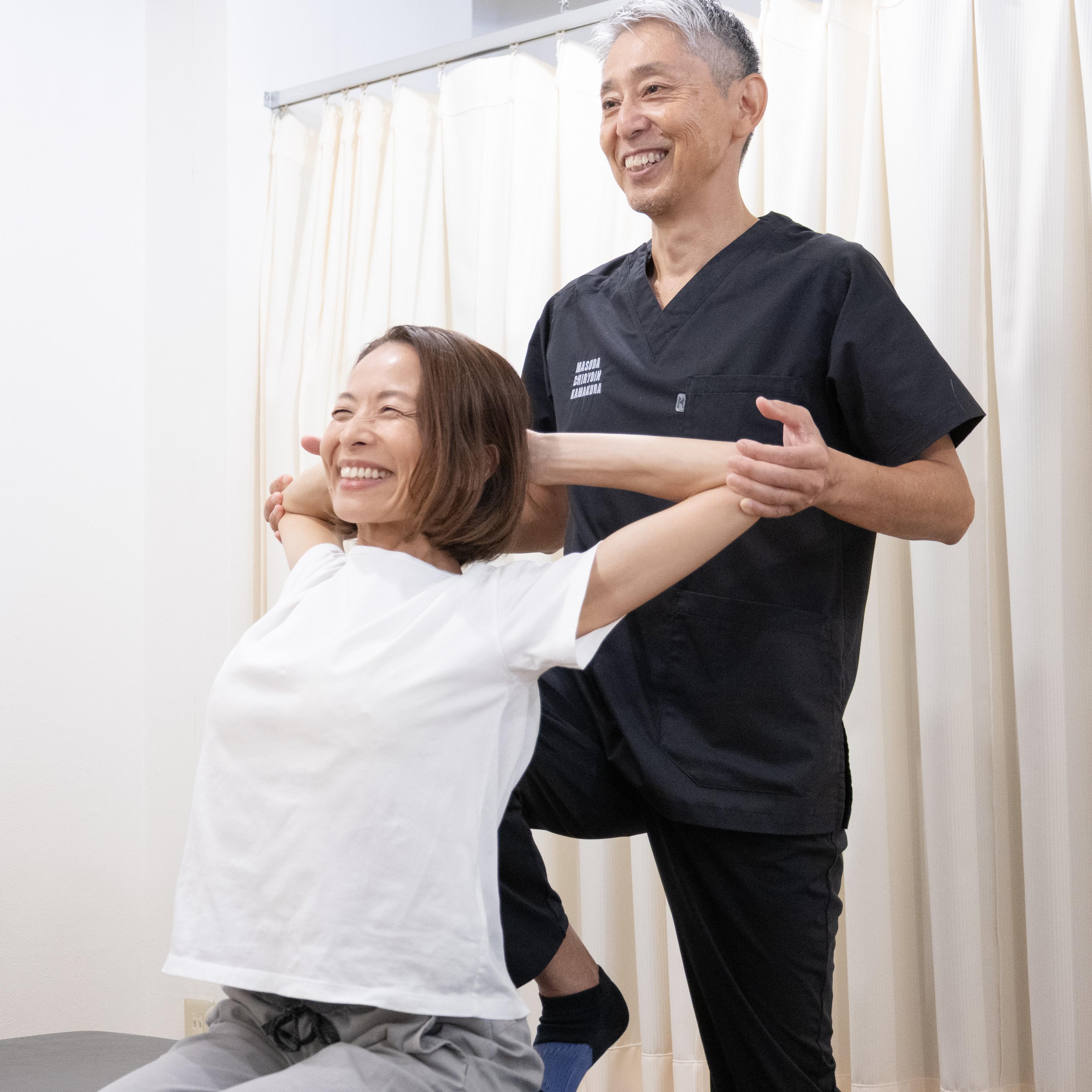 当院では、痛みやコリを根本的に解消し、一生使える体を維持するために、ストレッチ・施術・トレーニング指導を行なっています。